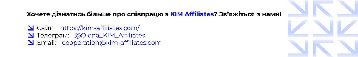Співпраця з KIM Affiliates на умовах постоплати та з використанням інноваційних трекінг-інструментів — це вигідне рішення для рекламодавців, які прагнуть результативності та безпеки своїх інвестицій. Ми гарантуємо ефективність кампаній і простоту інтеграції, що робить партнерство з нами максимально комфортним та результативним.