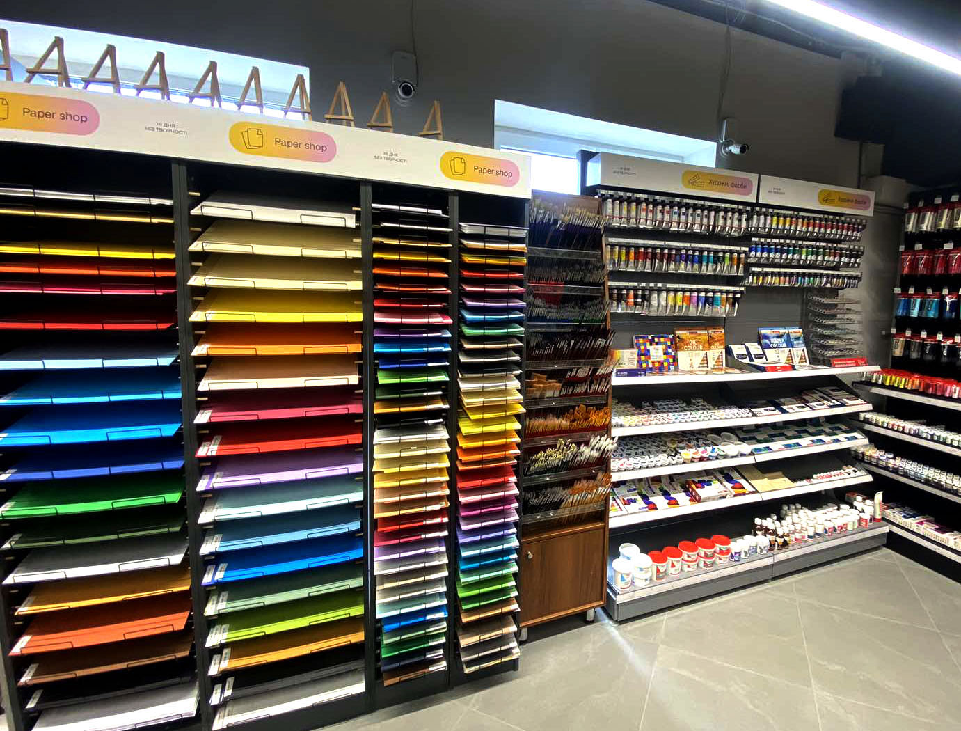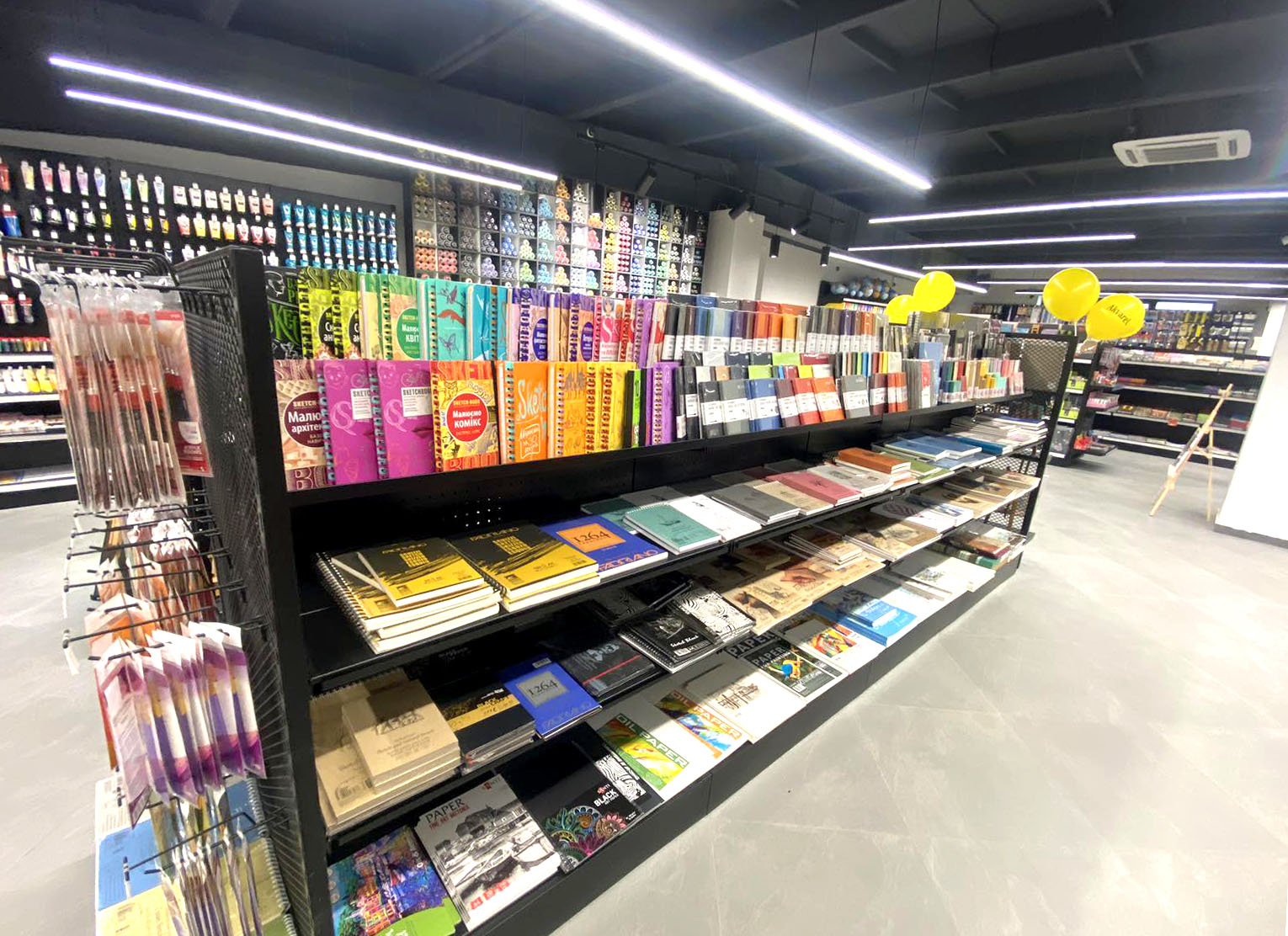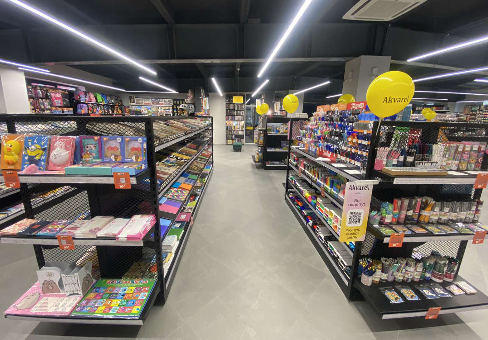 Площа магазину складає 220 кв. м. Традиційно, на полицях представлено широкий асортимент художніх матеріалів, канцелярських та шкільних товарів, рюкзаків, дитячих та настільних ігор, товарів для творчості та хобі. А ще мешканців міста чекає великий вибір книг – дитяча та доросла література, іноземні та українські бестселлери, класична та бізнес-література.
