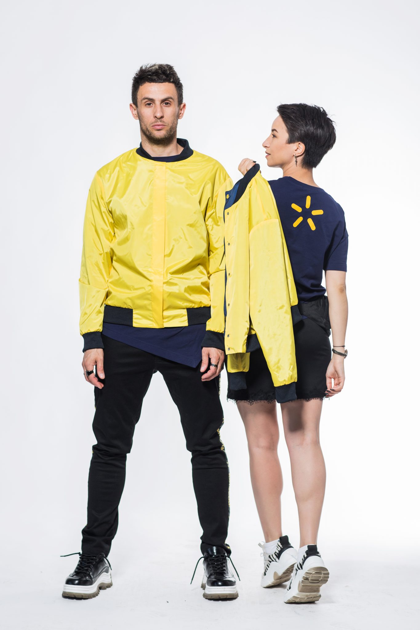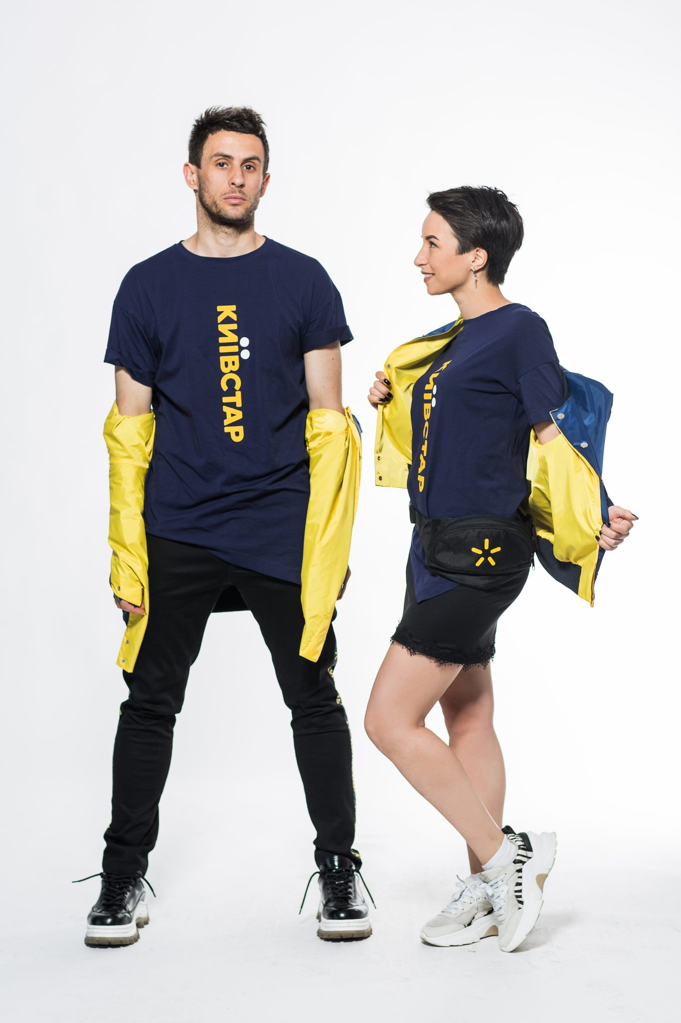 «Нове бачення дизайну форми Київстар полягає в тому, щоб в одному комплекті реалізувати комфорт, стиль, якість і функціональність. Поєднання асиметричної футболки зі спущеними рукавами та двостороннього бомбера з плащової тканини – це універсальний демісезонний варіант, який підходить і чоловікові, і жінці. Крій виконаний з урахуванням того, що у кожної людини є особливості фігури, тому ми обрали саме oversize. Крім стилю і універсальності, форма містить в собі ще інформаційну цінність. Так, наприклад, якщо консультант одягнув бомбер жовтою стороною – це значить, що в магазині проходять акції і є промопропозиції», – прокоментували дизайнери бренду Маргарита та Максим Комашня.