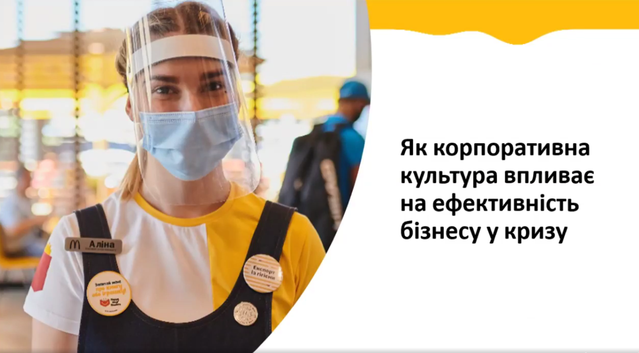 Сhief People Officer McDonald’s Ukraine Наталія Тіморіна під час RAU-webinar «Вплив пандемії на корпоративну культуру компанії» розповіла як корпоративна культура впливає на ефективність бізнесу в часи кризи, та які цінності допомагають компанії та працівникам злагоджено діяти навіть у найнепередбачуваніших ситуаціях.