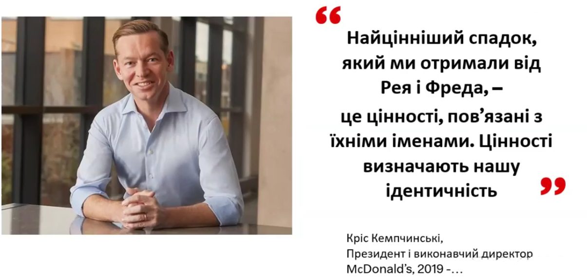 Якщо бізнес хоче вистояти в кризовій ситуації, дуже важливо, щоб цінності, які він декларує, співпадали з його діями. Ефективна корпоративна культура в McDonald’s Ukraine формувалась поступово.
