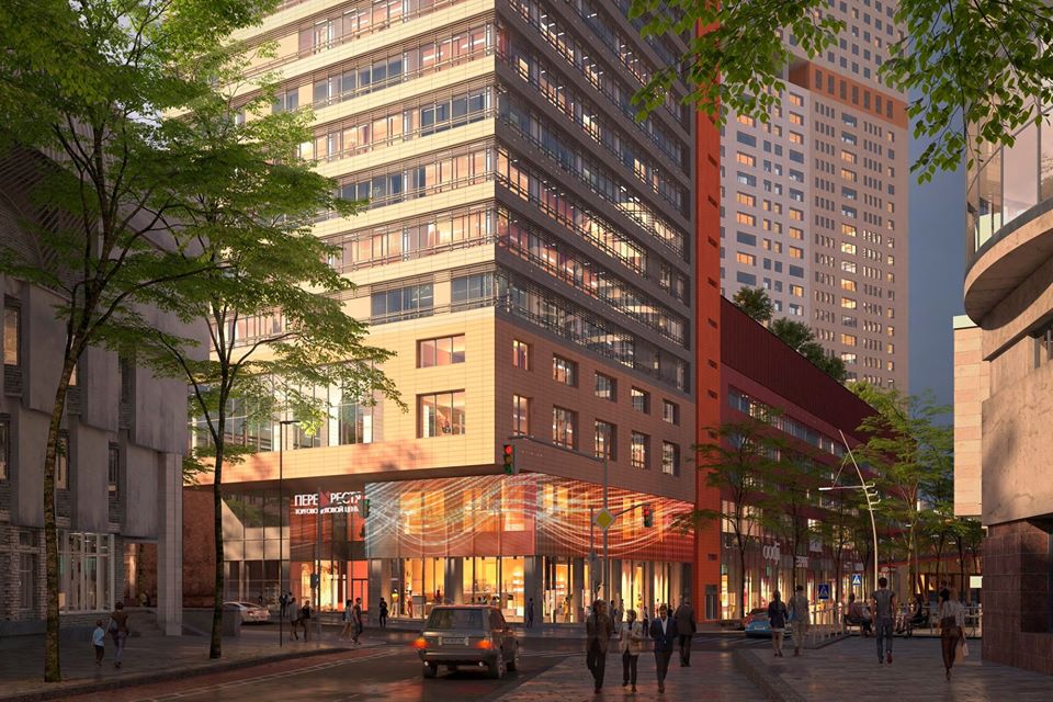 Як буде виглядати 20-типоверховий торгово-діловий центр Перехрестя, який будують в центрі Дніпра на місці ТЦ Кубометр, що закрився.