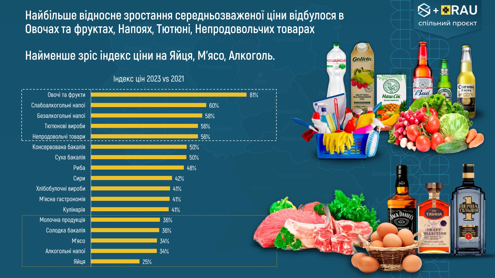 При цьому індекс цін, який відображає середньозважену вартість проданого товару в кошику покупця (тобто враховує інфляцію, подорожчання окремих товарів та збільшення вартості окремих типів продуктів, які знайшли свою заміну) виріс аж на 26%.