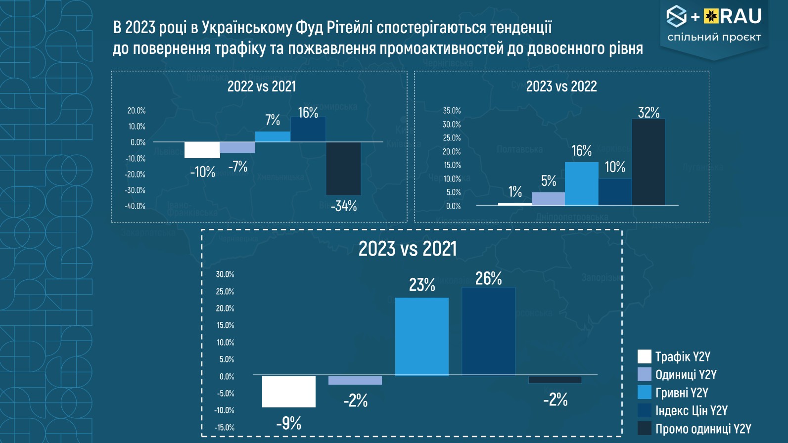 Також стрімку тенденцію до відновлення продемонстрував показник промо-активності рітейлерів, який наразі відстає від довоєнного значення всього на 2%, майже компенсувавши падіння на 34% у 2022-му.