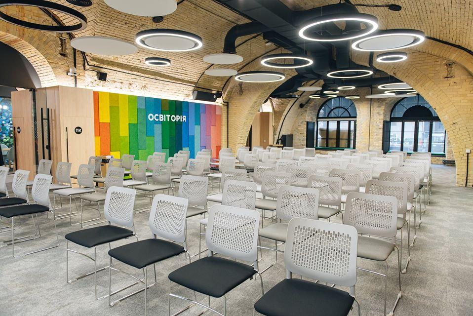 Але це тільки початок. У листопаді відкрився Osvitoria HUB – суспільний простір c заходами для людей, які цікавляться освітою. Він включає в себе open space на 20 місць, міні-офіси на 4-8 людей, тренінговий зал на 30-50 місць з лептопами, планшетами та інтерактивною дошкою, лекційний зал до 200 місць і дитячу кімнату. Крім того, в Освіторії є власна бібліотека і кав’ярня. Працює хаб цілодобово.