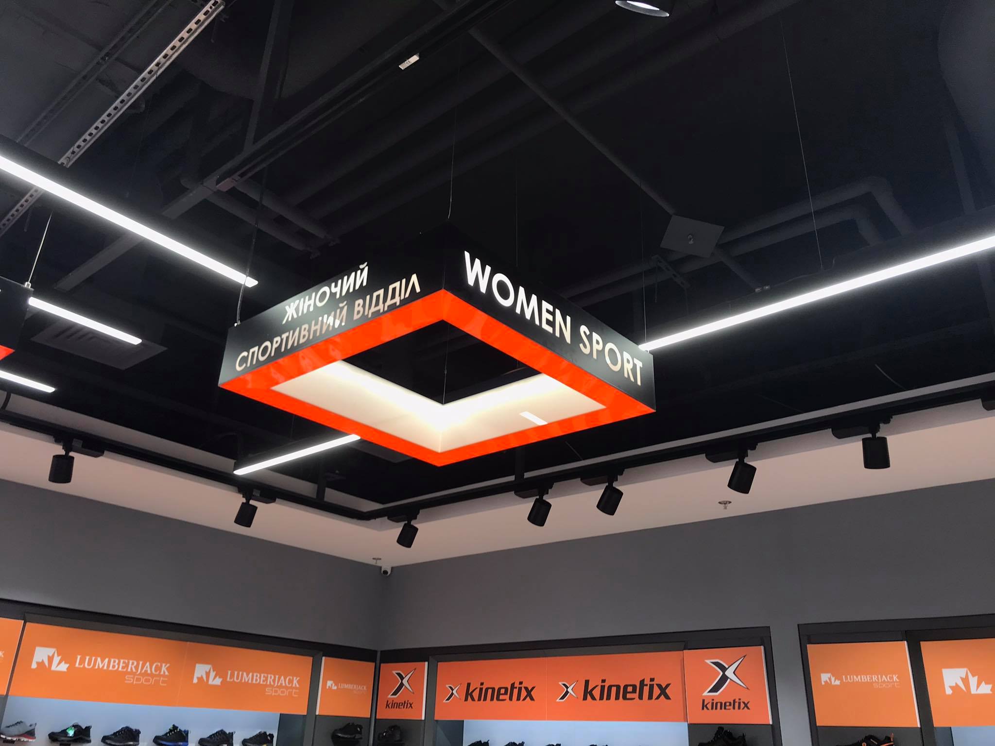 У магазині представлене взуття для різних аудиторій покупців: відділи жіночого та жіночого спортивного взуття, чоловічого та чоловічого спортивного взуття, а також дитячий відділ. Велика увага в магазині приділена темі безпеки. На інформаційних постерах – звернення до покупців з проханням приміряти взуття по одній людині в спеціальних зонах, де розташовані комфортні пуфи і стільці. На спеціальному стенді опублікована корисна інформація для споживачів, зокрема, опис символів, що позначають, з якого матеріалу виготовлено взуття.