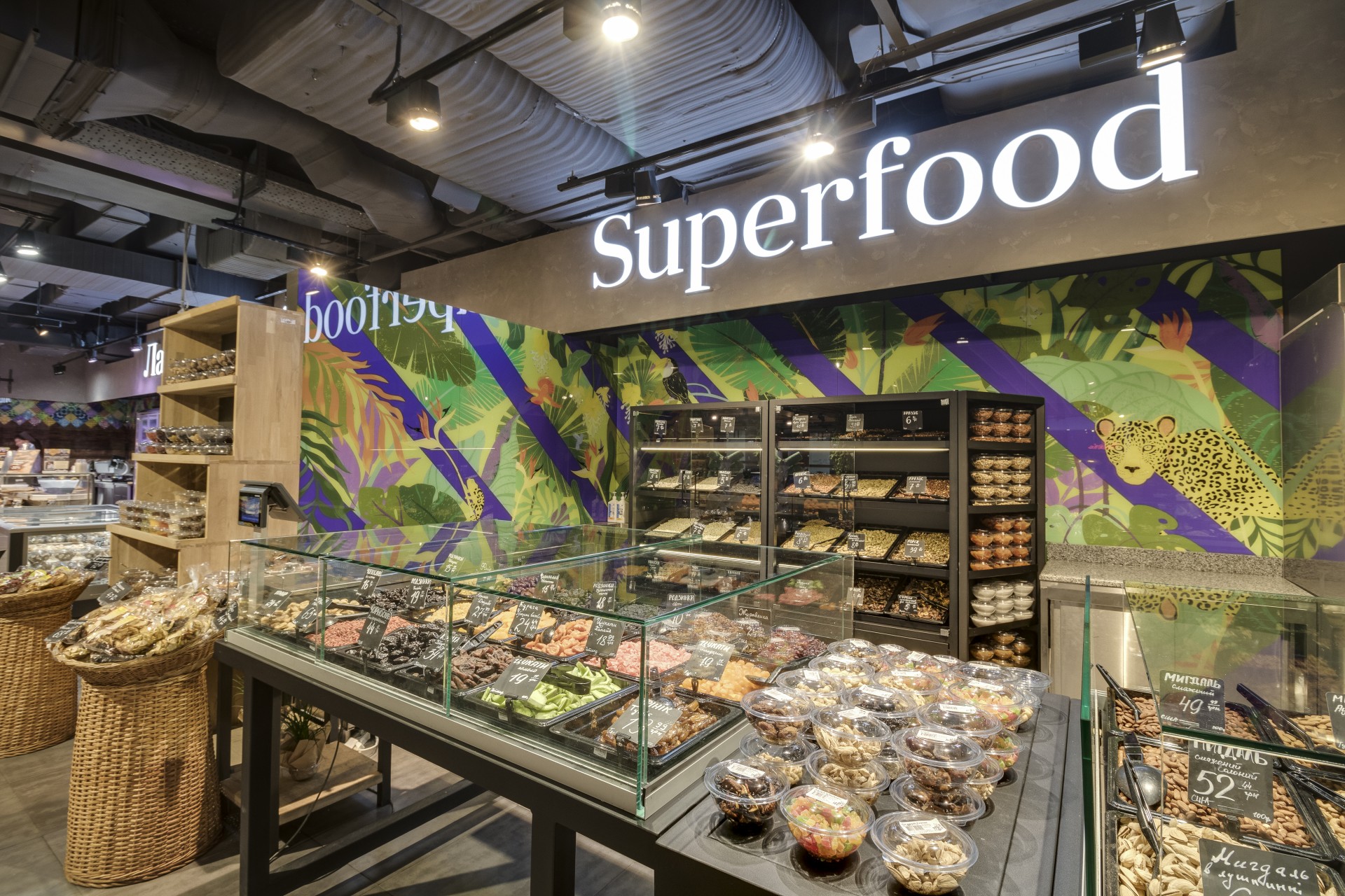 Головною родзинкою магазину став відділ «суперфудів». Це перший повноцінний відділ здорового харчування в мережах Сільпо і Le Silpo. Ідея полягає в тому, щоб зібрати в одному місці продукти, що не містять консерванти, барвники, ГМО, рафінований цукор, транс-жири та інші небажані компоненти.