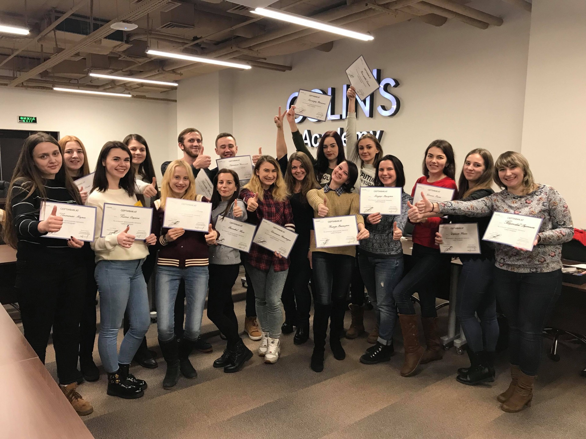 Colin’s Академія – спеціально обладнаний простір площею 150 кв. м в головному офісі компанії в Києві. В цілому, навчання персоналу – безперервний процес. Тут проходять тренінги не тільки для новачків, але і для більш досвідчених співробітників. В цілому в минулому році пройшло близько 2500 годин лекцій та семінарів. Для їх проведення в штаті компанії на постійній основі працюють два професійних тренера. Вони навчають стандартам обслуговування, знань товару і багато чому іншому.