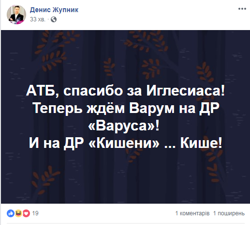 Ще одне свято жартів створив АТБ-маркет з запрошеним на своє 25-річчя Енріке Іглесіасом. Кращі меми, правда, вийшли не у самої мережі, а у користувачів.