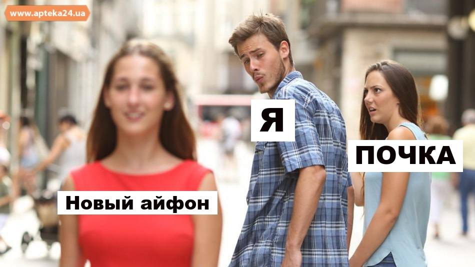 Незрозуміло навіщо, але Аптека24 також раптом згадала про те, що Apple 12 вересня представив нові моделі iPhone, Apple Watch і iPad Pro. Що сказати з цього приводу, в українській мережі також знайшли. В якості ілюстрації використовували один з найпопулярніших мемів минулого літа “невірний хлопець”, в якому молода людина заглядається на іншу дівчину під час прогулянки з коханою.