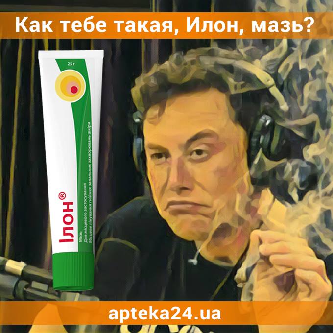 В Аптека24 підмітили, що мем з Ілоном Маском з косяком під час інтерв’ю може стати відмінною ситуативною рекламою про що-небудь на зразок мазі, особливо якщо врахувати, що тут може спрацювати гра слів “Маск-мазь” в популярному в мережі вираженні “Як тобі таке Ілон Маск?”Сам мем з’явився 6 вересня 2018 року, коли винахідник і мільярдер раскурил марихуану прямо під час інтерв’ю коміку Джо Рогану для його подкасту Joe Rogan Experience.
