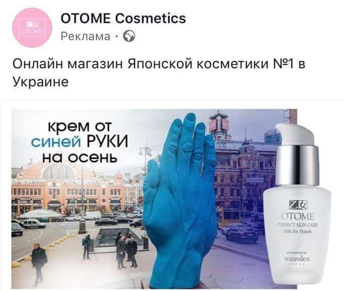 У бренда японської мінеральної косметики OTOME Cosmetics відмітились лише в рекламній публікації. Хороший жарт, але мабуть не вписався в загальну контент-стратегію сторінки.