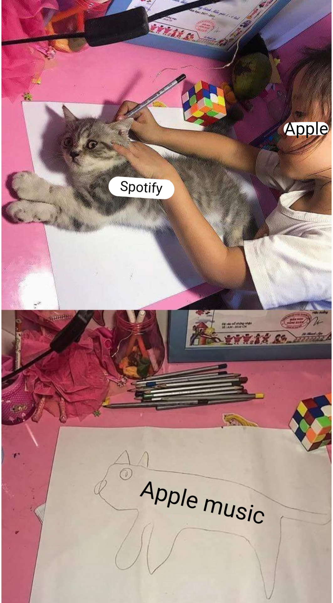 Мем з обведенням також забавно обіграли в тому, як Apple, розробляючи свій Apple Music, незграбно копіює досягнення Spotify.