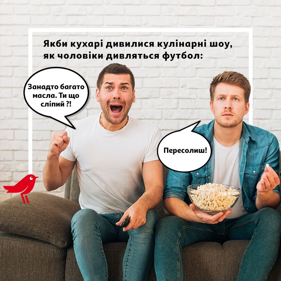 Ще Ашан трохи потролив стереотипну поведінку чоловіків біля телевізора.