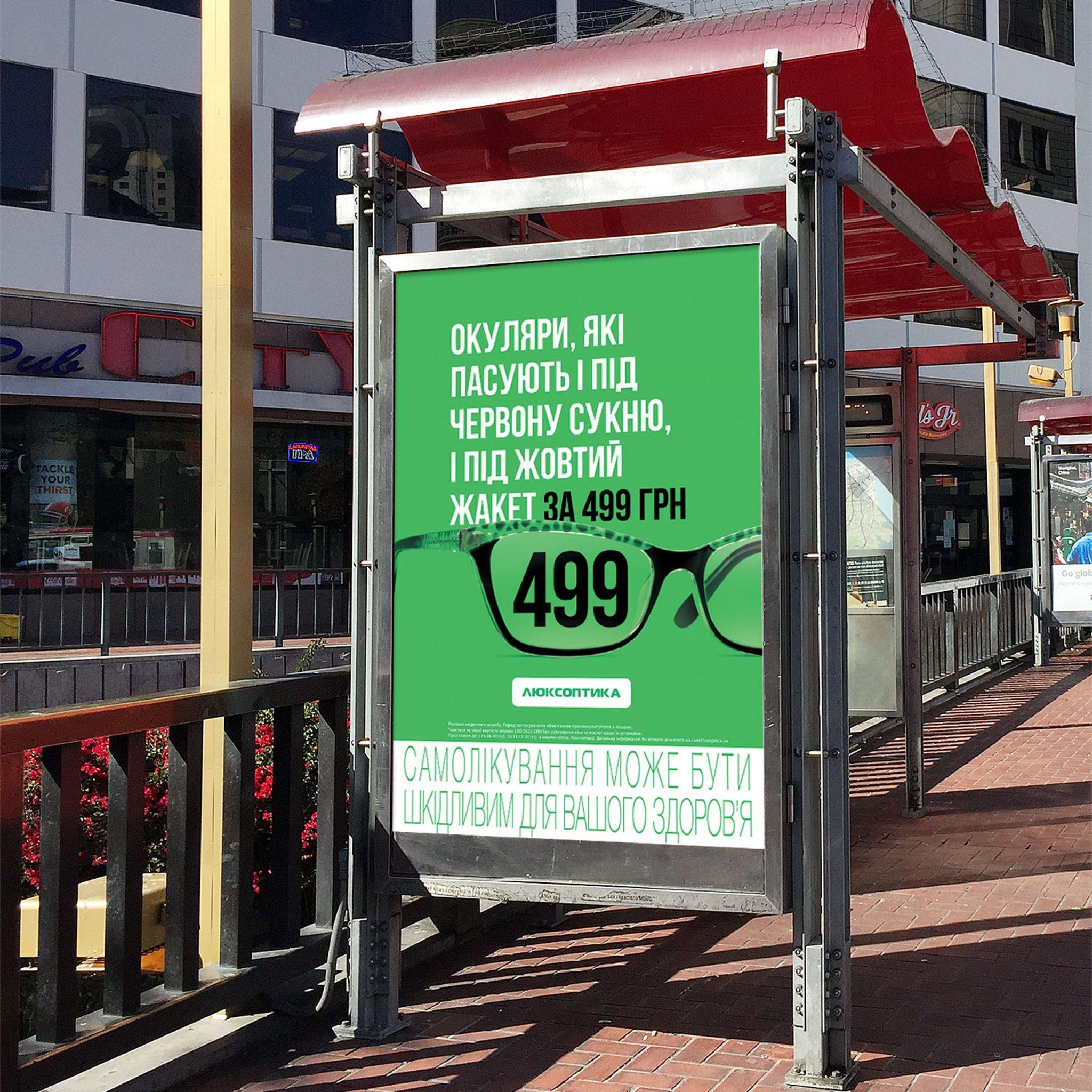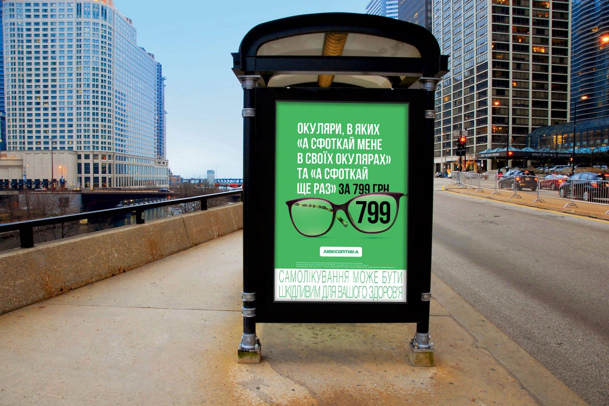 «Перш за все, ми зрозуміли, що це той рідкісний випадок, коли на рівні стратегії не потрібно шукати нішу, а можна і потрібно говорити речі, характерні для всієї категорії. Далі були стратегії дантистів, які в якийсь момент почали замість слів «приходьте до нас за здоровими зубами» говорити «приходьте за красивими усмішками». Ну а визначальним моментом в розробці стратегії стало спілкування з головним лікарем мережі Люксоптика: людиною, яка може годинами захоплено розповідати про окуляри і очкариків, і подумав, – та це ж і є Люксоптика. Так народилася концепція «ми любимо вас, очкарики», – ділиться концепцією власник і креативний директор Bart & Fink Олег Томін.