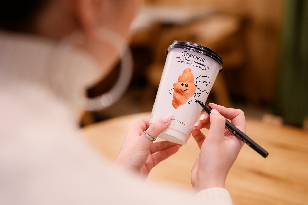 “Lviv Croissants для наших гостей – це значно більше, ніж просто заклад, так само як і стаканчики – це більше, ніж просто посуд, – ділиться співвласник компанії Юрій Загродський. – Це і нагадування про важливі сенси, і ті самі слова в потрібний момент, і перша усмішка за день. Тому з нагоди 10-річчя ми вперше вирішили запропонували нашим гостям стати співавторами наших стаканчиків і намалювати свої круасанові моменти”.