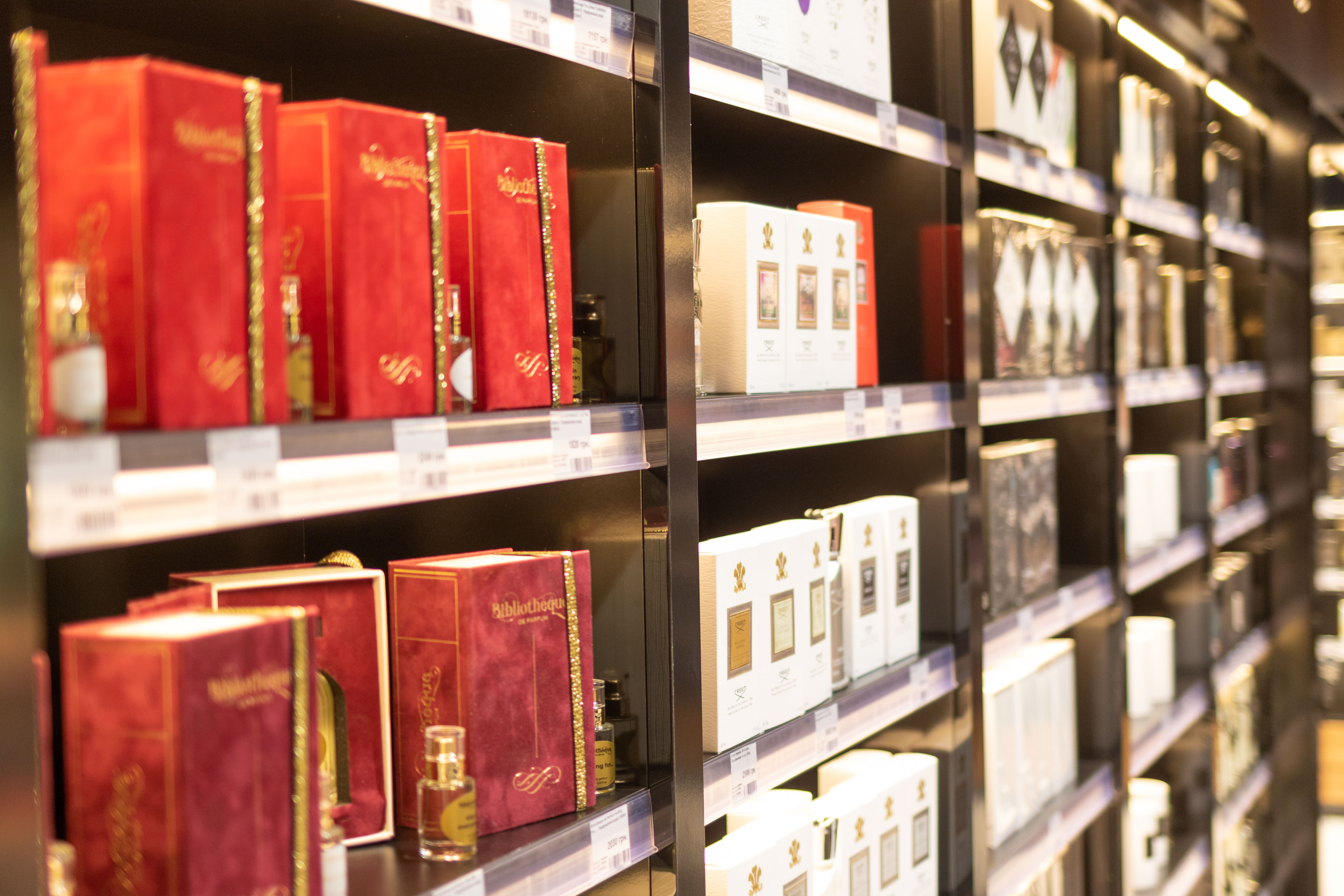 По периметру залу розташовуються найбільш популярні товари та бренди сегменту елітної парфумерії. По ліву руку від входу починається жіноча парфумерія, по праву – чоловіча.