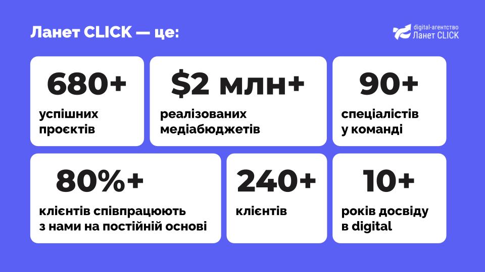 Власне як агенція digital-маркетингу Ланет CLICK працює на ринку близько шести років, хоча загальний досвід роботи в сфері digital перевищує десять років. За цей час вдалося вивчити різні сфери українського бізнесу, в тому числі й ритейл, з яким особливо тісна співпраця йде останніми роками. Були опрацьовані різні маркетингові інструменти як от: створення контенту для SMM-просування, копірайтинг та team building при SEO-просуванні. Близько 80% клієнтів працюють з агенцією на постійній основі (тобто більше року), що свідчить про високий рівень експертизи й задоволення клієнтських запитів.