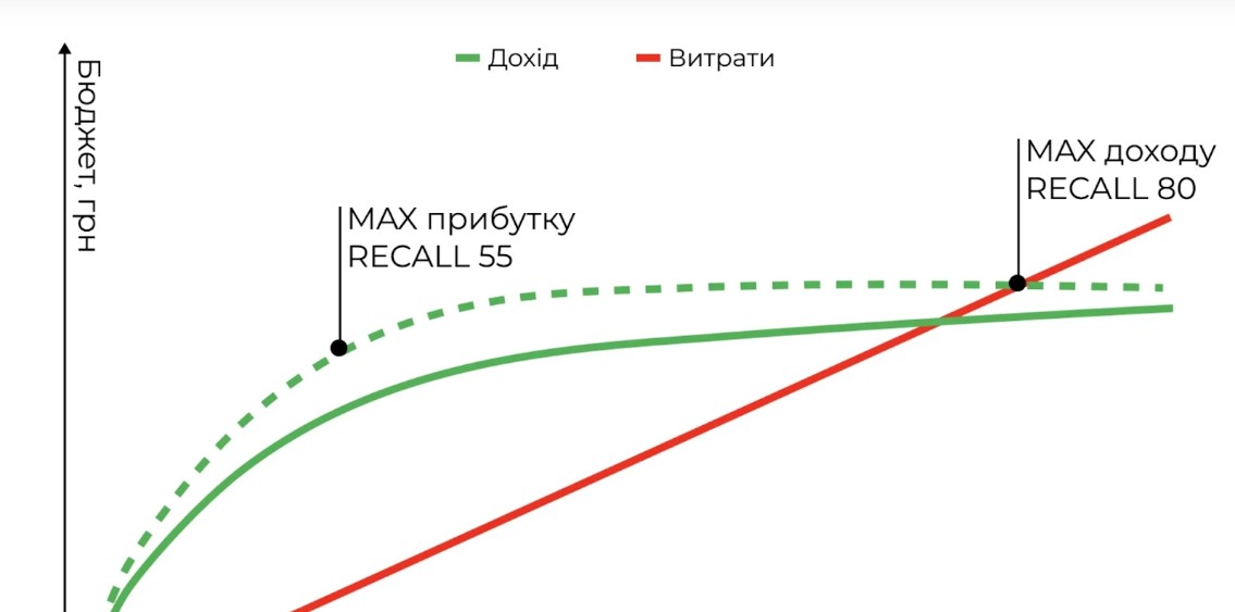 Якщо згаданий раніше уявний маркетолог вирішив використати не ручну, а предиктивну сегментацію для розсилки, йому в пригоді стане метрика чутливості (recall) предиктивної моделі. Вона показує, наскільки добре модель охоплює всіх потенційних покупців усередині обраного сегмента. Якщо мета — охопити якомога ширшу аудиторію, приміром, для інформування про новинки в асортименті, рекомендовано встановлювати вище значення recall (на рівні 70-80). А якщо необхідно звузити аудиторію, але збільшити конверсію, рекомендовано використовувати нижче значення (в межах 50-60).