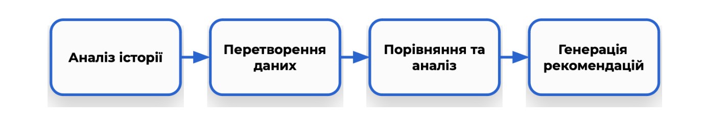 Генерація рекомендацій. Трансформер генерує рекомендації, які логічно випливають з минулих покупок.