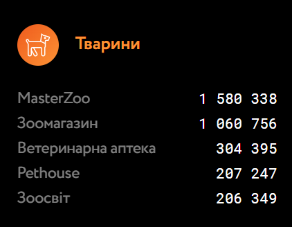 Monobank оприлюднив на своїй сторінці дашборд, в якому показав топ-5 продавців в різних категоріях покупок. Саме MasterZoo очолив перелік в категорії “Тварини”, здійснивши понад 1,5 млн грн у продажах. Це визначає їхню визначну роль у сфері роздрібної торгівлі та підкреслює високий рівень довіри споживачів до товарів та послуг.