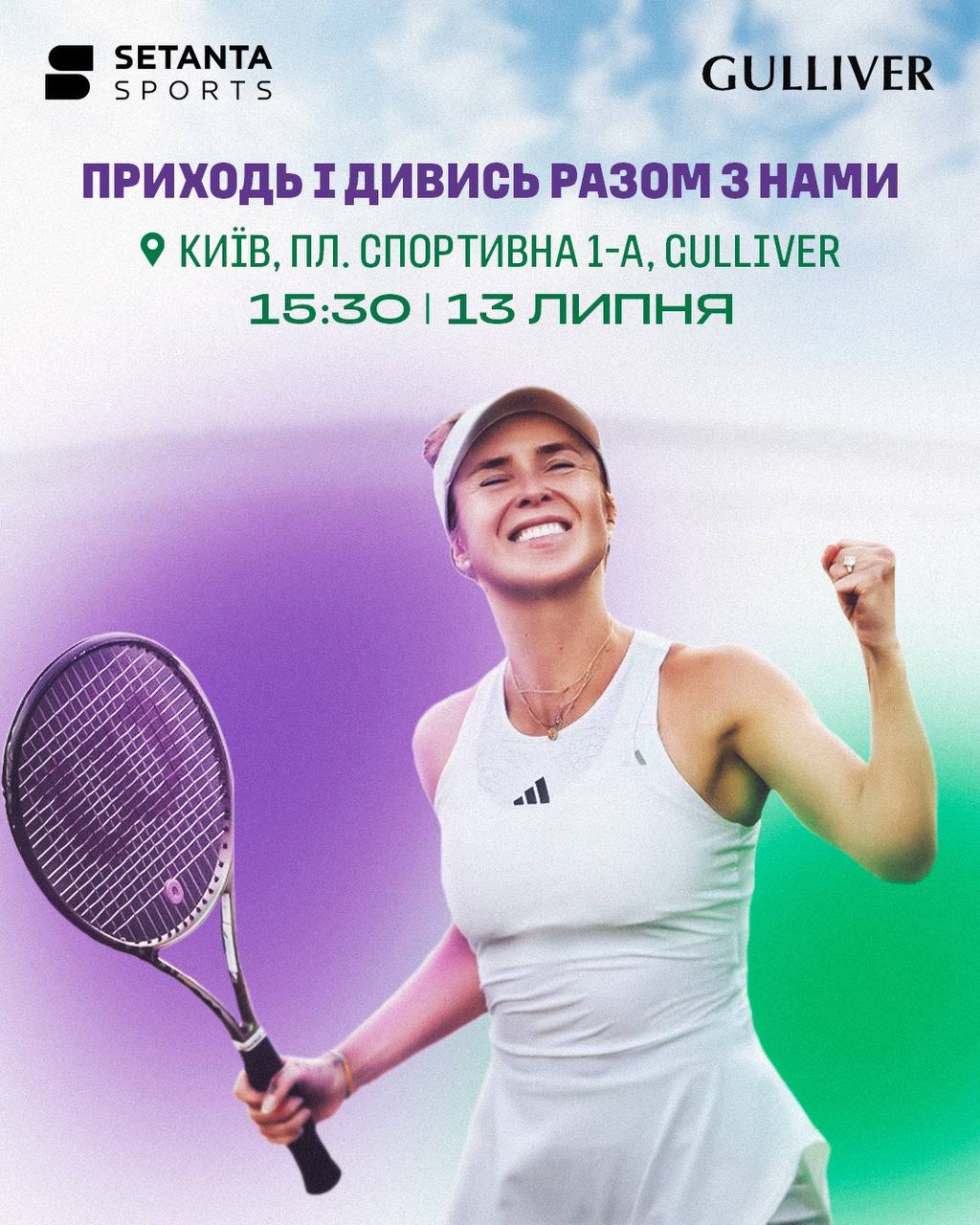 Сьогодні, 13 липня, відбудеться пряма трансляція півфіналу Вімблдону за участі української тенісистки Еліни Світоліної – на найбільшому екрані торгово-розважального центру Gulliver. Початок події о 15:30 за київським часом.