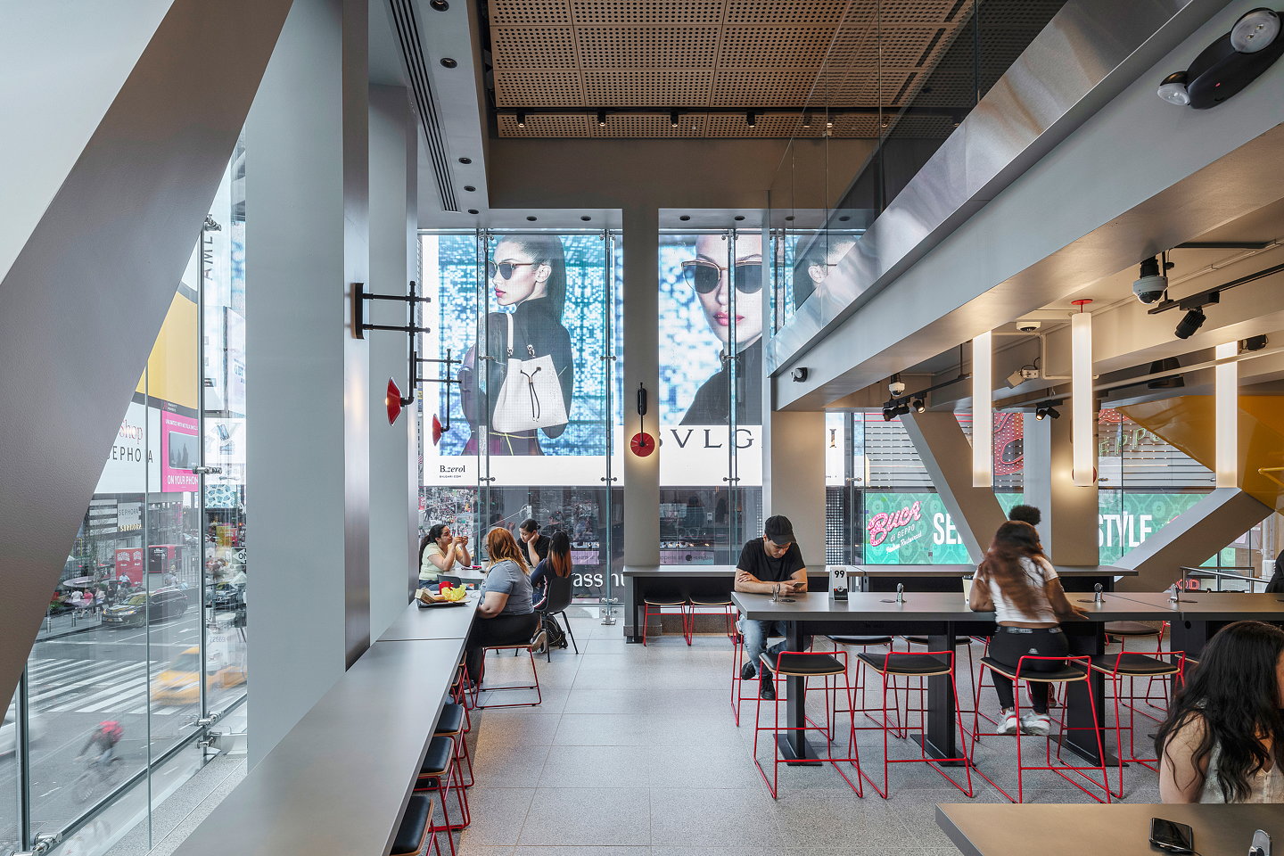 Не так давно в центрі Нью-Йорка, на розі 45-ої вулиці та Бродвею, відкрився новий концептуальний McDonald’s, розташований на місці оригінального ресторану, який працював ще з 1985 року. Дизайн і концепцію закладу розробила студія і архітектурне бюро Landini Association. І використані ідея помітно виділяють новий McDonald’s від інших об’єктів мережі.