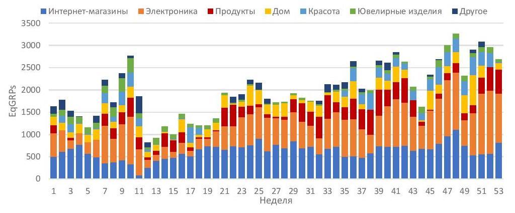 Виходить, що інтернет-магазини вже максимально наблизилися до магазинів електроніки в обсязі інвестицій. А якщо врахувати, що багато хто з рітейлерів з суміжних категорій рекламували або згадували свої онлайн-версії, то можна констатувати, що частка онлайн-торгівлі в витратах на рекламу досягла 40%.