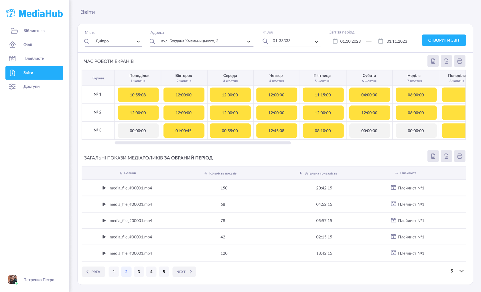 MediaHub також збирає та аналізує дані про перегляди контенту. Система надає детальну статистику, що дозволяє оцінювати ефективність кампаній і коригувати стратегію для підвищення рентабельності реклами.