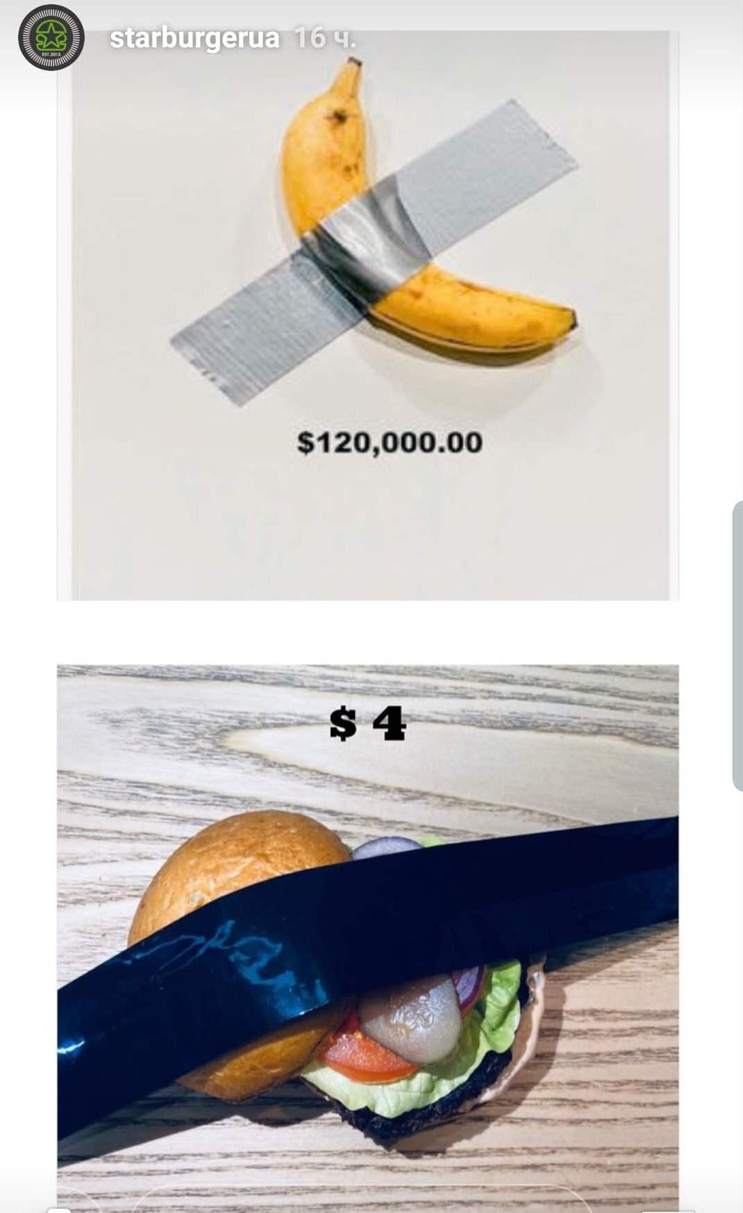 Star Burger запустили “історію” в соцмережах, запропонувавши замість банана за $120 000, бургер за $4. Це ж скільки бургерів можна з’їсти на таку суму?
