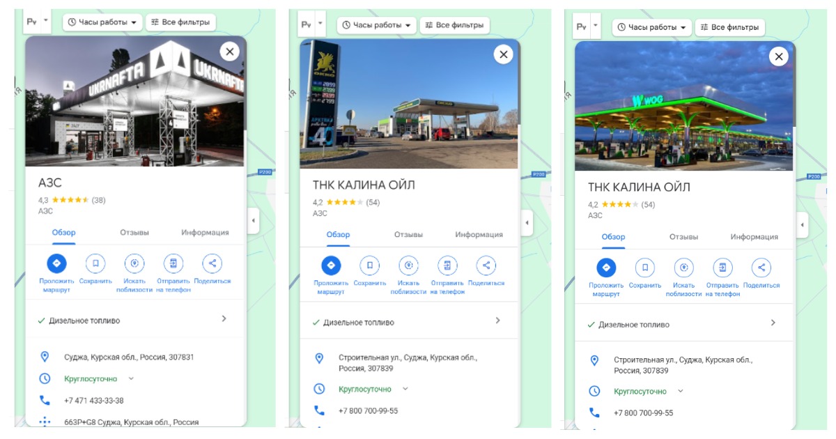 Найбажаніші АЗК країни, які хочуть бачити в Курській області теж вже відмічені на карті – це ОККО, WOG та Ukrnafta.