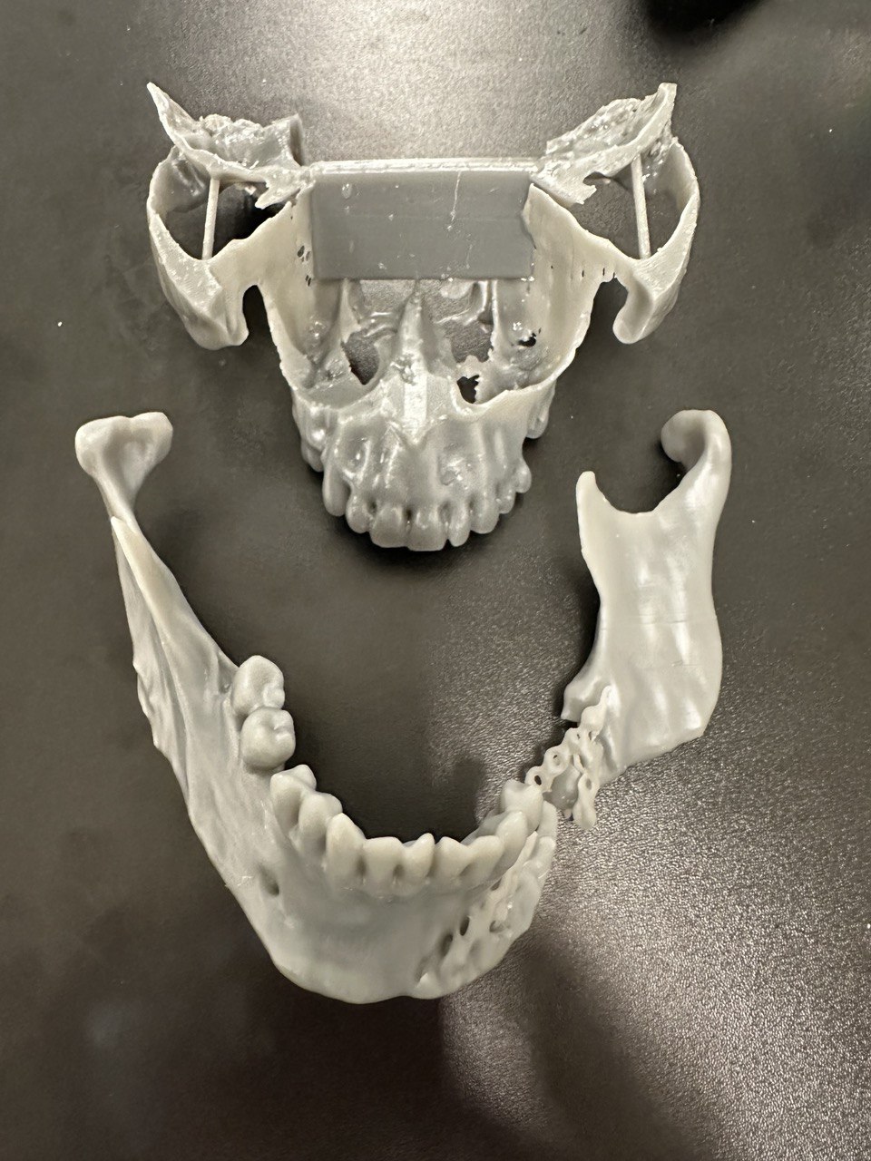 - Для надскладної операції з реконструкції обличчя після мінно-вибухової травми військового Михайла Бартошика лікарі потребували 3D-моделі його щелепи в реальному розмірі – з метою вивчити травму, якнайкраще підготуватися до операції та ретельно спланувати лікування. Модель було виготовлено на 3D-принтері завдяки попередній спіральній комп’ютерній томографії. Під час операції одночасно працювали дві команди хірургів; було використано кістковий фрагмент клубової кістки пацієнта, яку адаптували під травму та закріпили титановою пластиною. До речі, торік завдяки Алло Михайло отримав сучасний біонічний протез верхньої правої кінцівки вартістю 45 800 євро, який максимально компенсує втрачені функції руки.