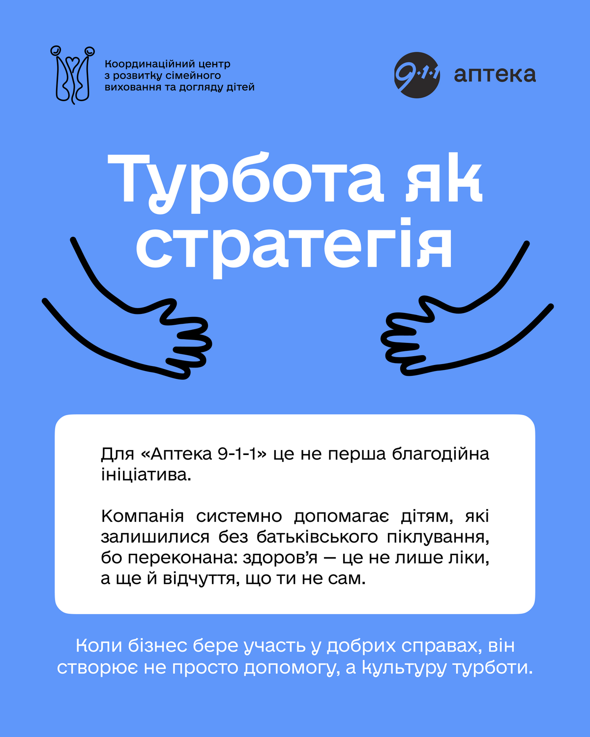 Турбота про здоров’я — це не лише ліки. Це також увага, підтримка й відчуття, що поруч є ті, кому небайдуже. Саме з таким розумінням компанія Аптека 9-1-1 долучилася до благодійної ініціативи, спрямованої на підтримку родин, які взяли на себе особливу місію — виховання дітей, позбавлених батьківського піклування.