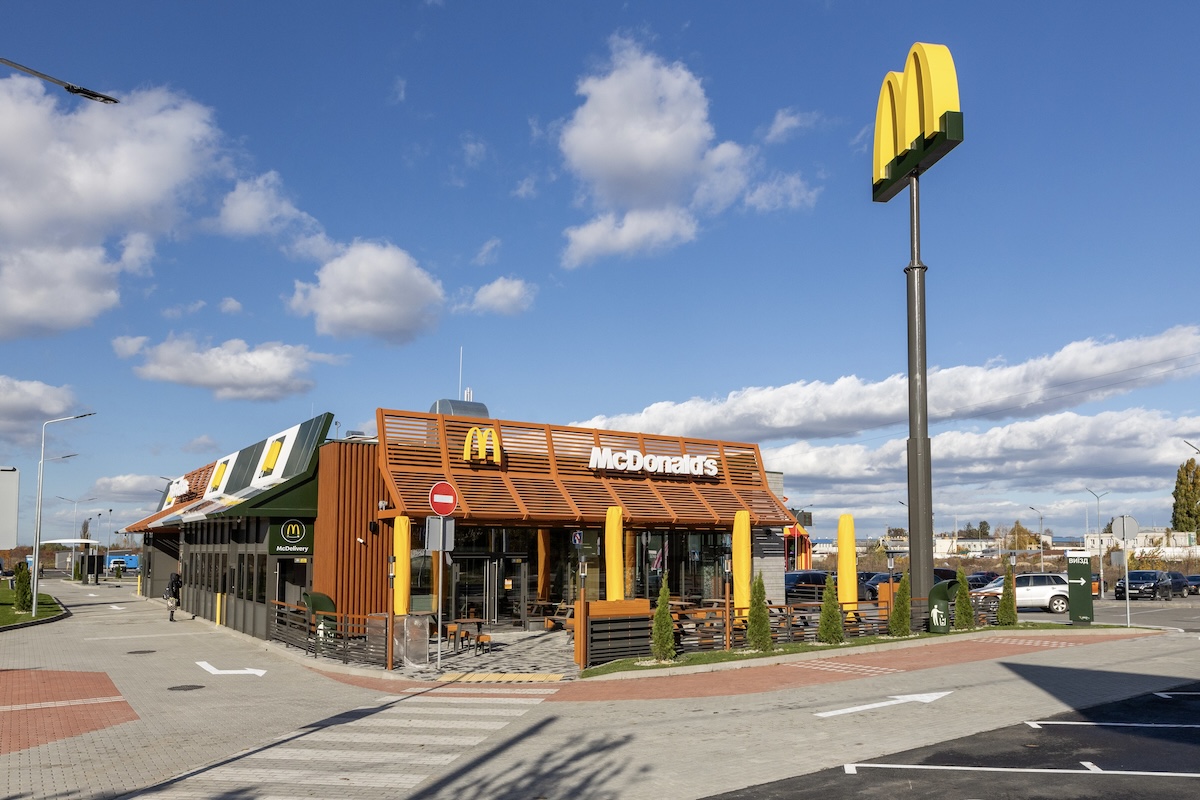 Новий одноповерховий ресторан McDonald’s розташований неподалік великого торговельного центру та має загальну площу понад 470 кв. м. У залі міститься 128 посадкових місць, а на терасі — ще 84.
