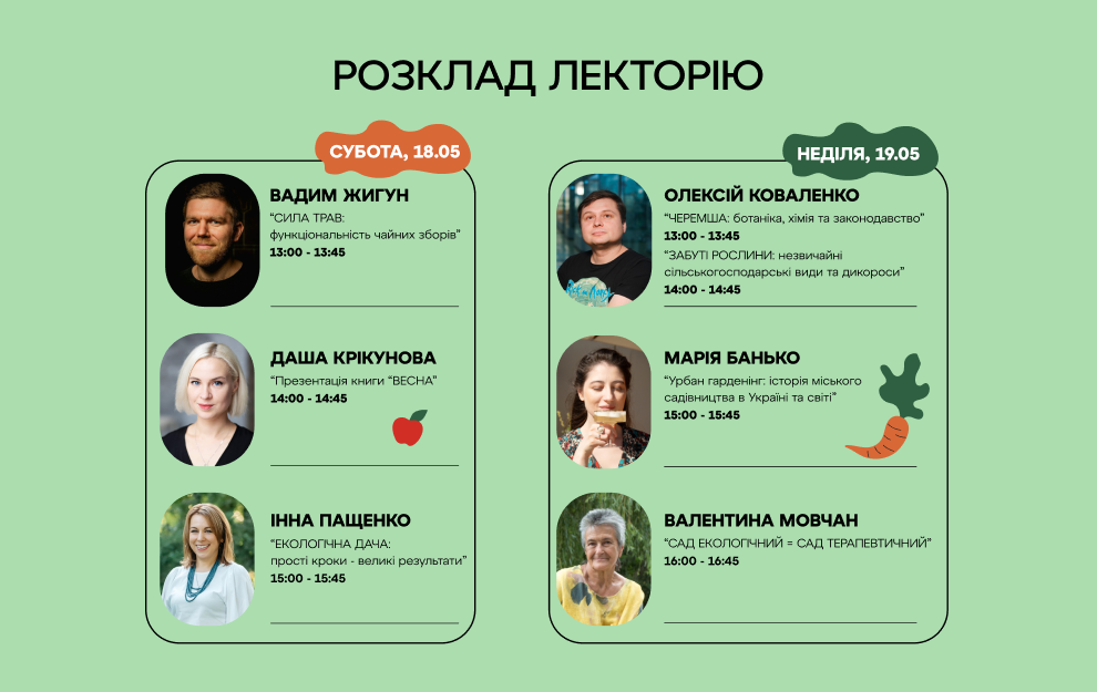 Шість спікерів поділяться своїми знаннями на теми від урбаністичного городництва до тонкощей збору трав, а дехто навіть презентує нову книгу. За посиланням повний розклад лекторію.