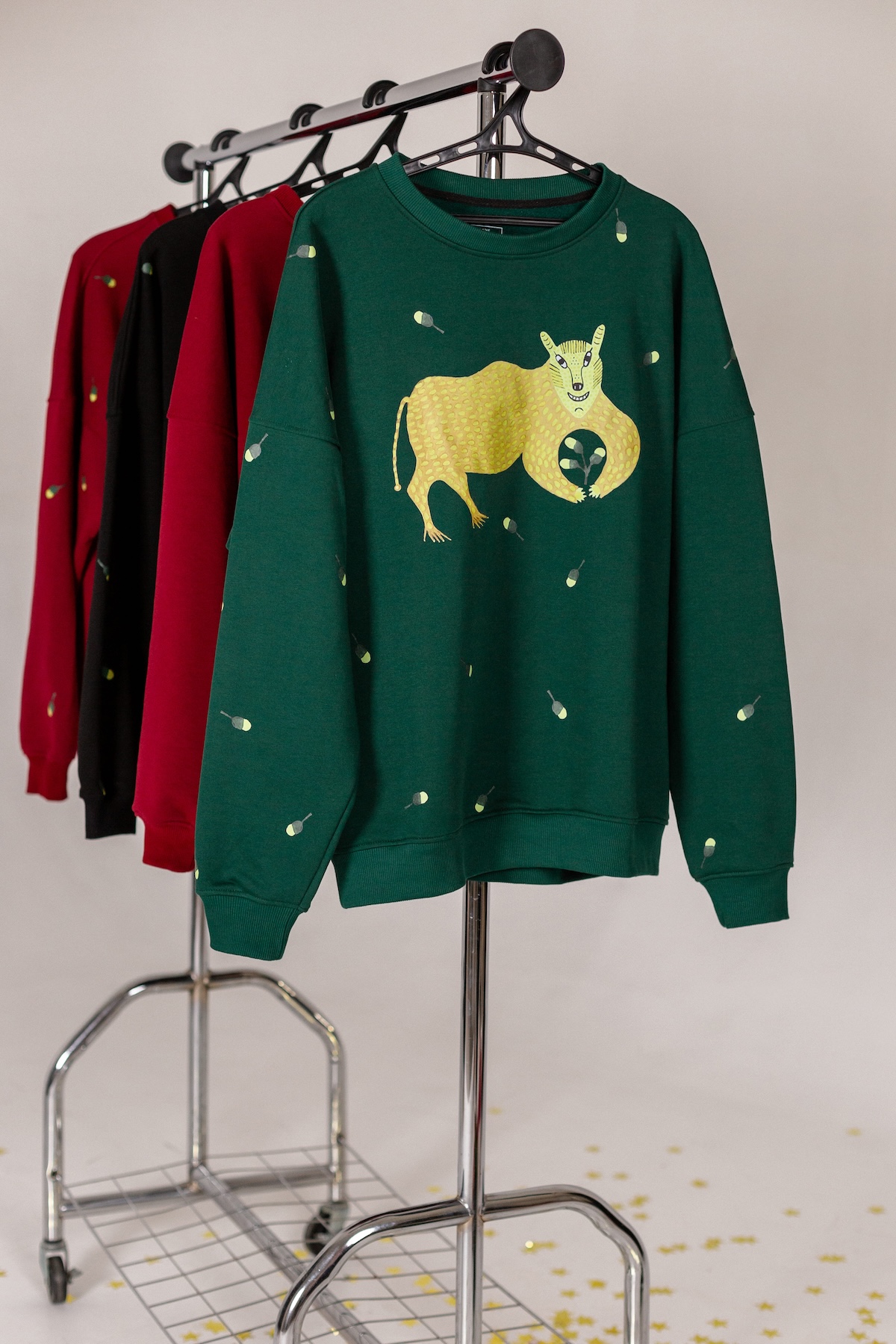 Гостям онлайн-супермаркету Сільпо доступні світшоти у трьох розмірах та трьох кольорах — синьому, бордовому й зеленому із зображеннями фантастичних звірів:
