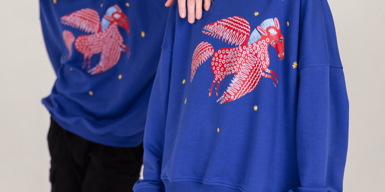 - світшот «Зоряний Пегас» за мотивами малюнку «Коньок-горбуньок весь світ облітає і на міста прилітає» 1971 року.