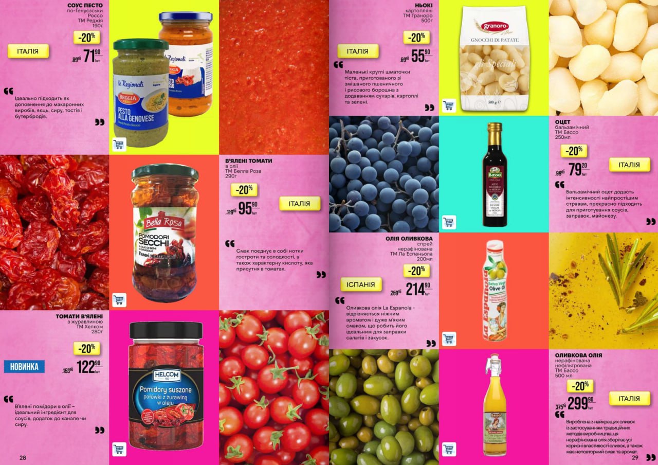 Найкраще доповнення до улюблених страв — соуси, дресінги та овочі прямо з сонячної Італії. Їх можна використовувати як самостійні закуски, додавати у салати або ж надавати з їхньою допомогою незвичних ноток звичним стравам.
