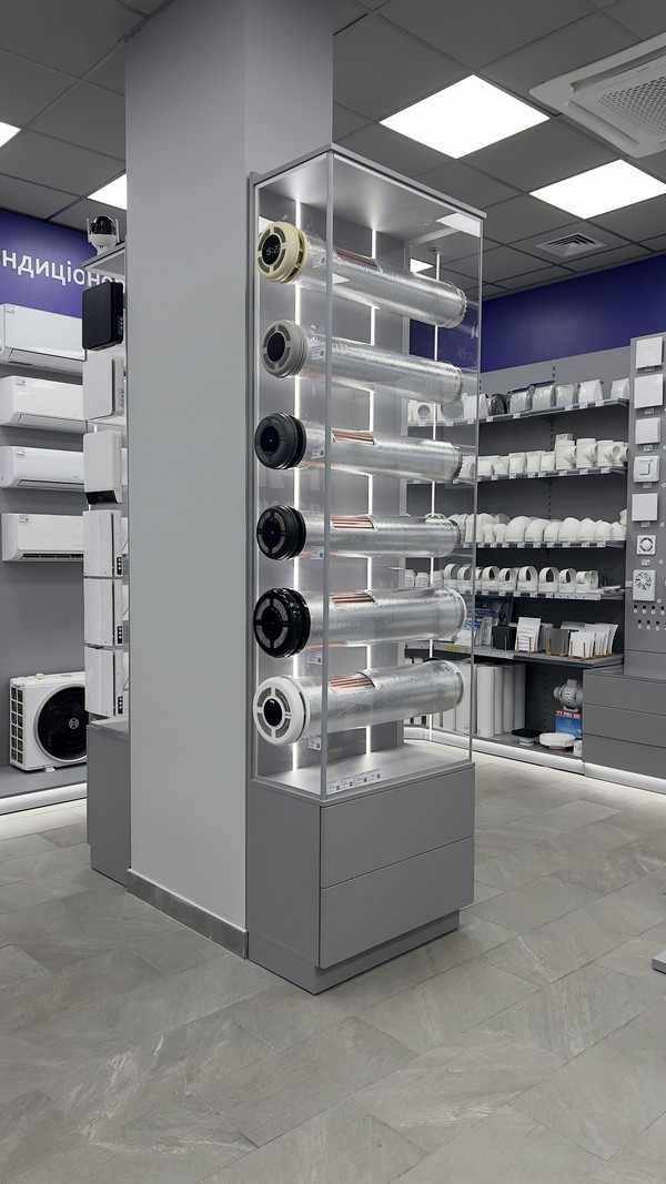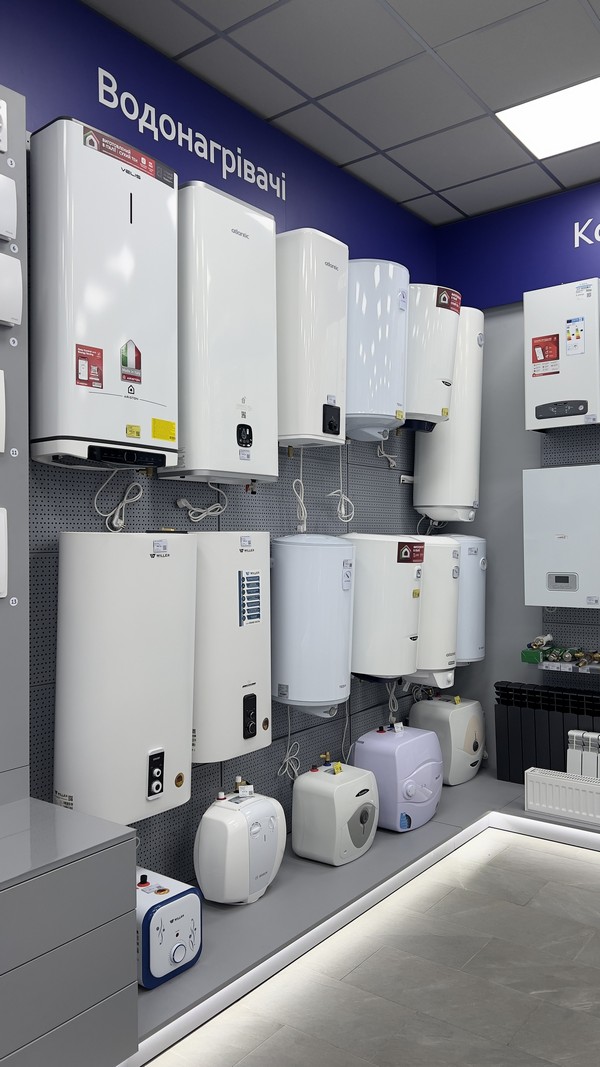 В шоу-румі представлені всі основні групи товарів: вентиляція, водонагрівачі, кондиціонери, котли, рушникосушки та обігрівачі.