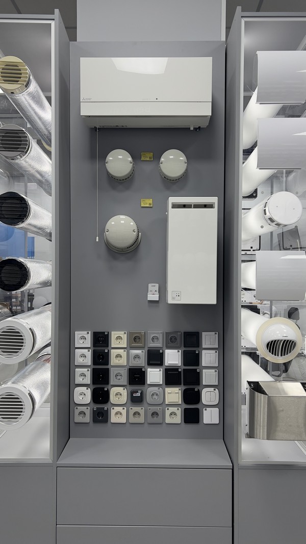 - Можливість протестувати техніку. Наприклад, прямо на місці можна оцінити рівень шуму та роботу рекуператорів повітря або витяжних вентиляторів – адже кожен експонат підключений до електрики.