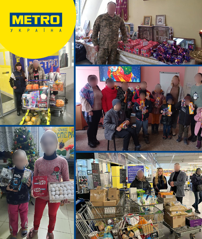 З нагоди святкування Дня Святого Миколая компанія Metro Україна традиційно запросила своїх покупців та співробітників долучитися до збору продуктів харчування довготривалого зберігання та солодощів для маленьких українців у всіх містах, де представлена торгова мережа, за винятком тимчасово зачинених ТЦ в Миколаєві, Харкові та Маріуполі. За результатами акції вдалося зібрати понад 1000 кілограмів товарів. Усі зібрані подарунки компанія передала діткам-переселенцям у 15 містах України, де представлені ТЦ Metro. Партнером в цій активності традиційно став благодійний фонд «Фудбенк», з яким компанія співпрацює вже понад 10 років.