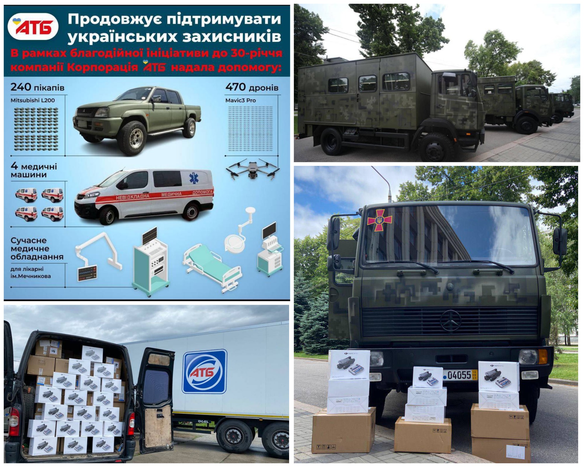 Військовим підрозділам придбано та передано 240 пікапів Mitsubishi L200, а також 470 сучасних БПЛА Mavic3 Pro. Військові медики отримали чотири спеціалізовані автівки, а Дніпропетровська обласна клінічна лікарня ім. Мечникова одержала сучасне медичне обладнання, яке розширило можливості порятунку життя та повернення здоров’я важкопораненим українським воїнам.