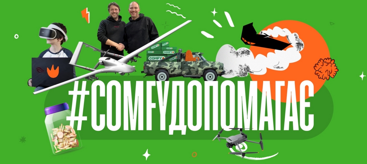 В серпні 2023-го, на честь дня народження Comfy разом з Фондом Сергія Притули організували збір 11 млн грн на закупівлю 15 БПЛА «Валькірія» та зробили перший внесок у 500 000 грн. Весь перелік акцій та участі у зборах на ЗСУ можна подивитися за посиланням.