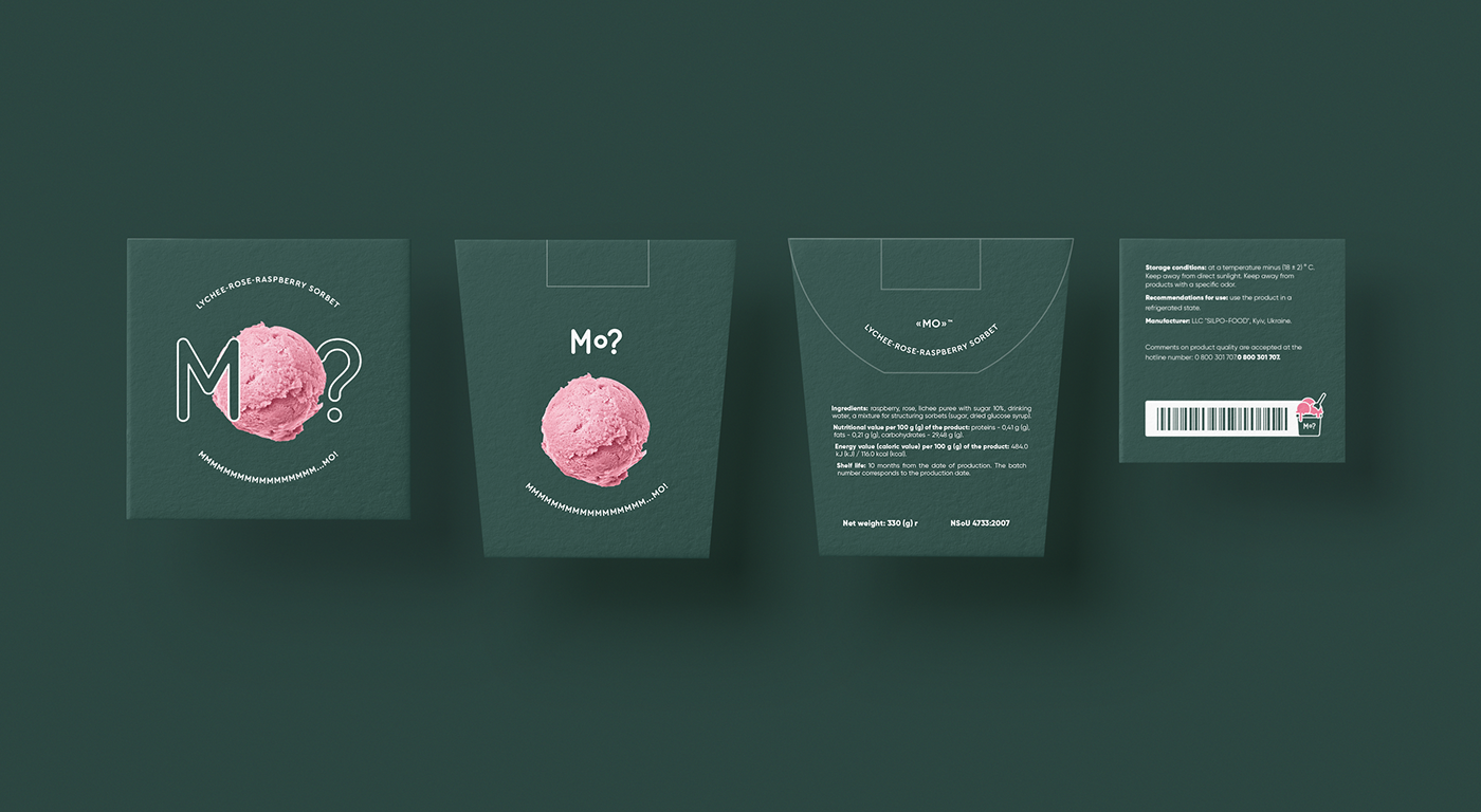 Команда Spiilka Design Офіс розробила концепт айдентики і упаковки для морозива «МО» від мережі супермаркетів Сільпо, зберігши мінімалістичний стиль рітейлера.