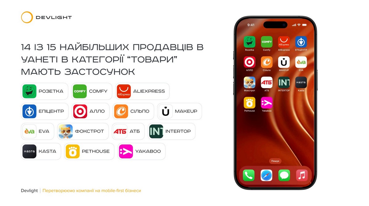 Так само 14 із 15 найбільших гравців в сегменті саме електронної комерції мають свій мобільний застосунок.