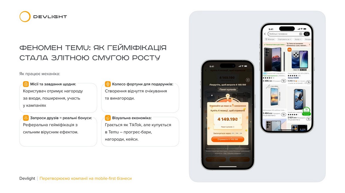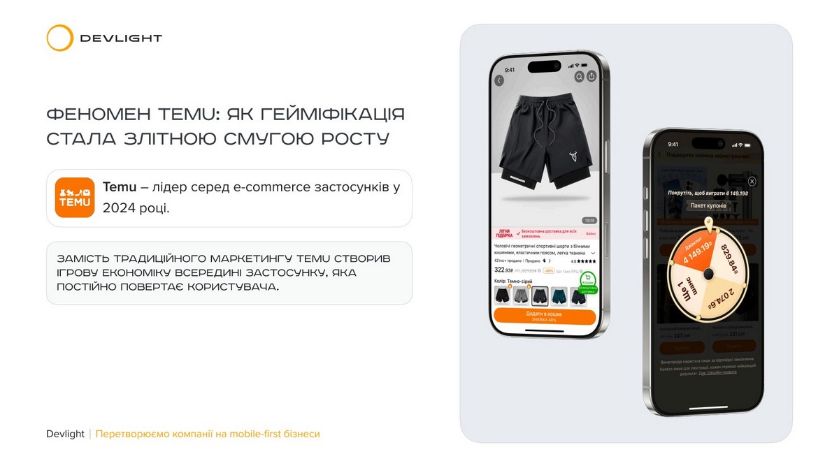 Тут гарним прикладом є історія злету маркетплейсу Temu, який замість традиційного маркетингу створив так звану ігрову економіку всередині застосунку. Де головна задача ритейлера полягає в тому, аби постійно залучати клієнта до своїх активностей.