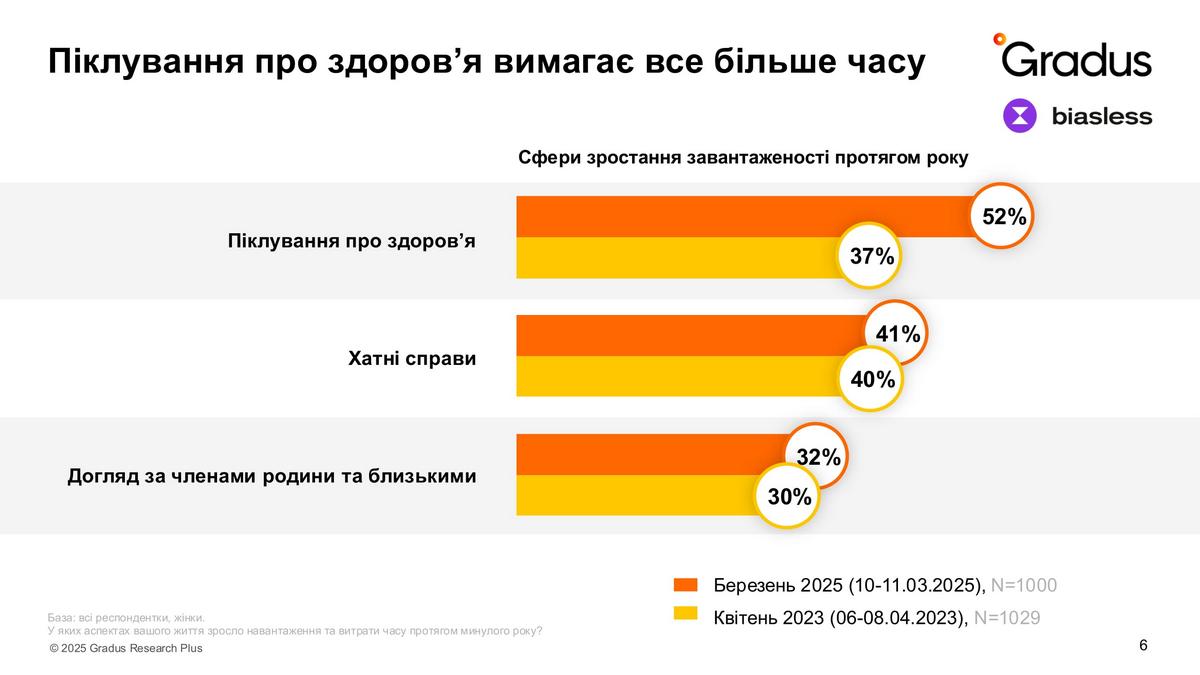 Водночас добре, що українці почали розуміти: опікування станом свого здоров’я є нагальною необхідністю і на це треба витрачати більше часу та зусиль. Варто зазначити, що мова в цьому випадку йде саме про опитування жінок (про що свідчить відповідний напис під лого – biasless).