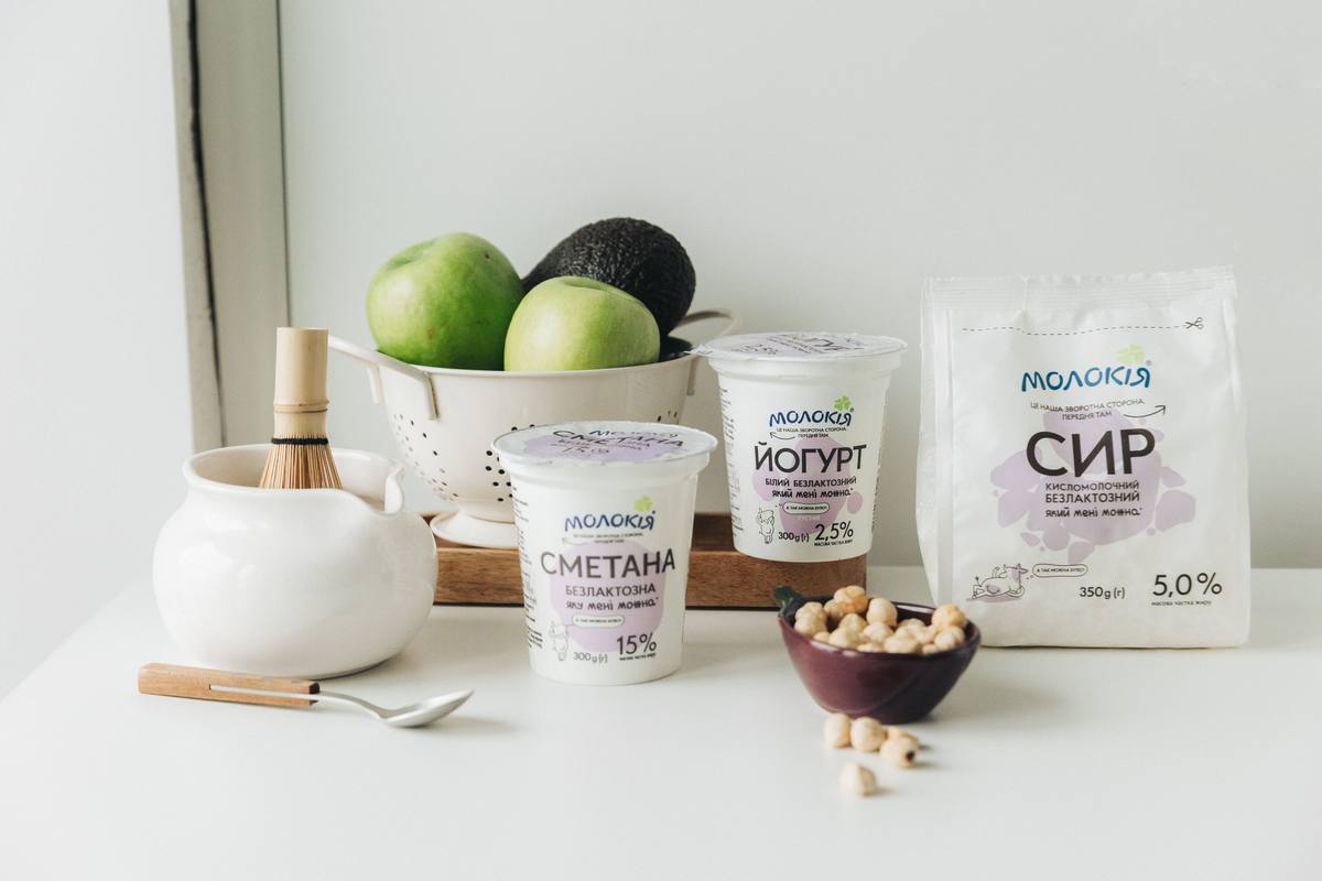 Загалом, лінійка безлактозних продуктів Молокія включає: кисломолочний сир, сметану, білий йогурт, молоко Молокія Ультра.