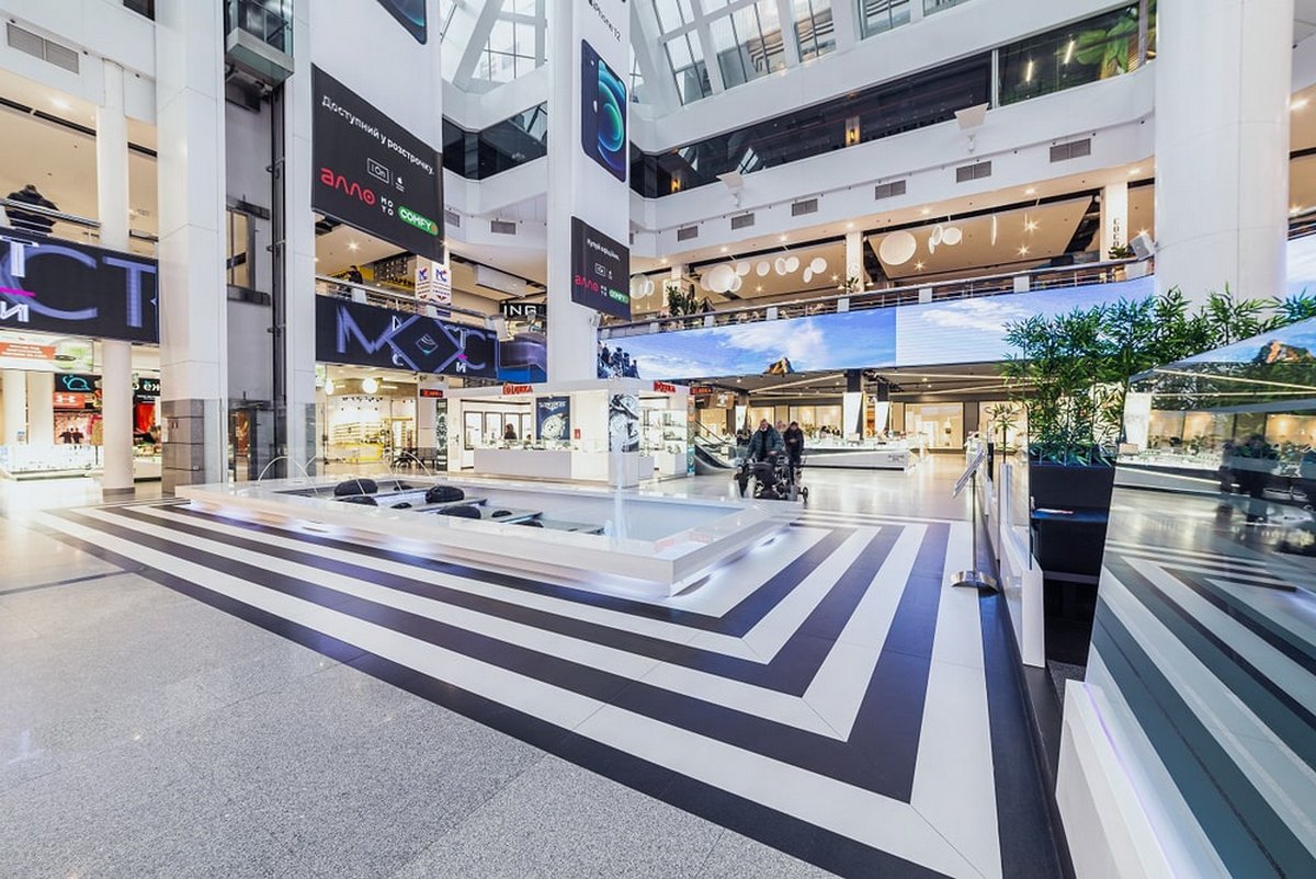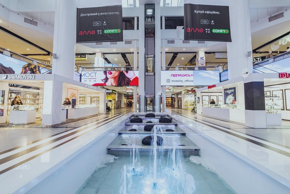 16. МОСТ-сіті має величезний об’ємний простір – Атріум площею 700 кв. м, який об’єднує всі поверхи ТРК, наповнюючи їх повітрям і світлом. У серці комплексу знаходиться найбільший кільцевий екран, площею 195 кв. м.