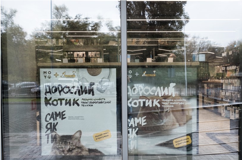 Протягом тижня у всіх магазинах МОYO транслюватимуть грайливі відеоролики із закликом шукати своїх тварин у притулках. А вітрину найбільшого цілодобового магазину MOYO, що у м. Києві за адресою: вул. Марка Вовчка 18А, забрендували зображеннями дорослих котиків та песиків зі слоганом «Саме як ти». З тематичною обкладинкою вийшла і головна сторінка інтернет-магазину moyo.ua.